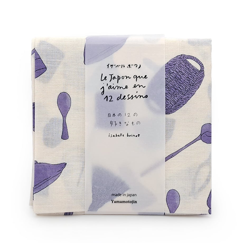 イザベルボワノが日本で見つけた「お気に入り」の12種類のイラストが大判ハンカチになりました。素朴な日常を描いたイラストと綿の自然なきなりを残したリルコット素材とのコラボをお楽しみ下さい。
